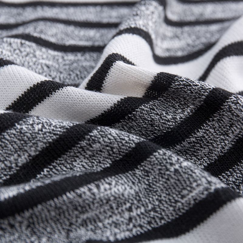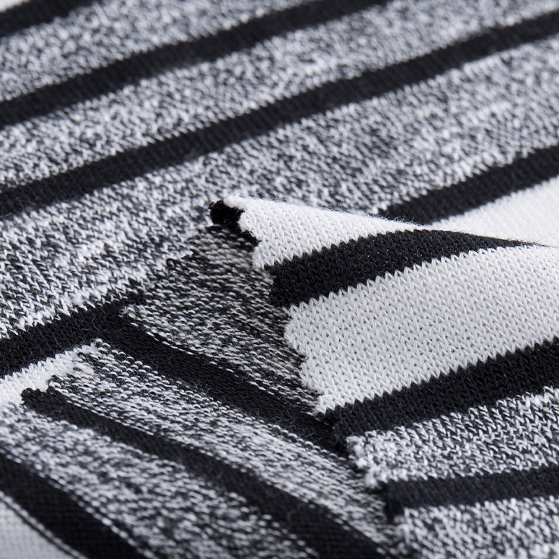 Color Stripe Coarse Needle Knit Fabric is made from a high-quality blend of 70% polyester, 25% recycled fibers, and 5% spandex, offering excellent stretch, durability, and a soft, comfortable hand feel. With a weight of 234 GSM and a width of 155 cm, it provides a structured yet flexible knit texture. The vibrant color stripe pattern adds visual appeal, making it suitable for casual tops, sweaters, knitwear, and stylish streetwear garments.