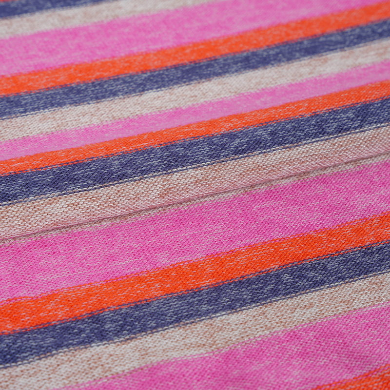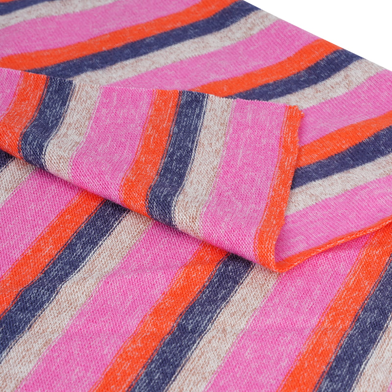 The fabric is a blend of high rayon content with polyester and a small amount of spandex, knitted in a heavy knit structure and brushed for a soft, fluffy hand feel with excellent stretch. Rayon provides smooth, skin-friendly comfort and moisture absorption, polyester enhances durability and stability, and spandex adds moderate elasticity for a snug and comfortable fit.